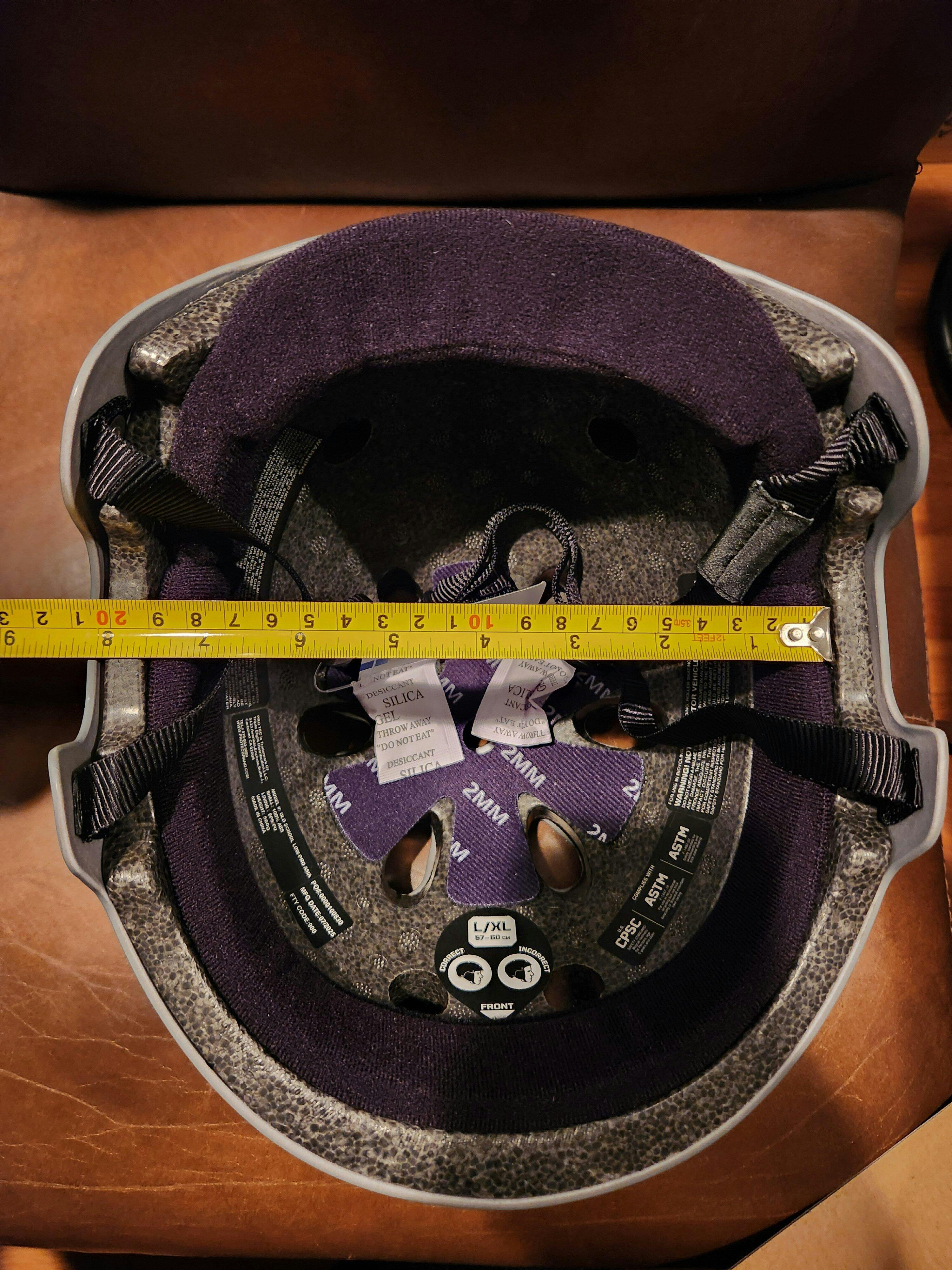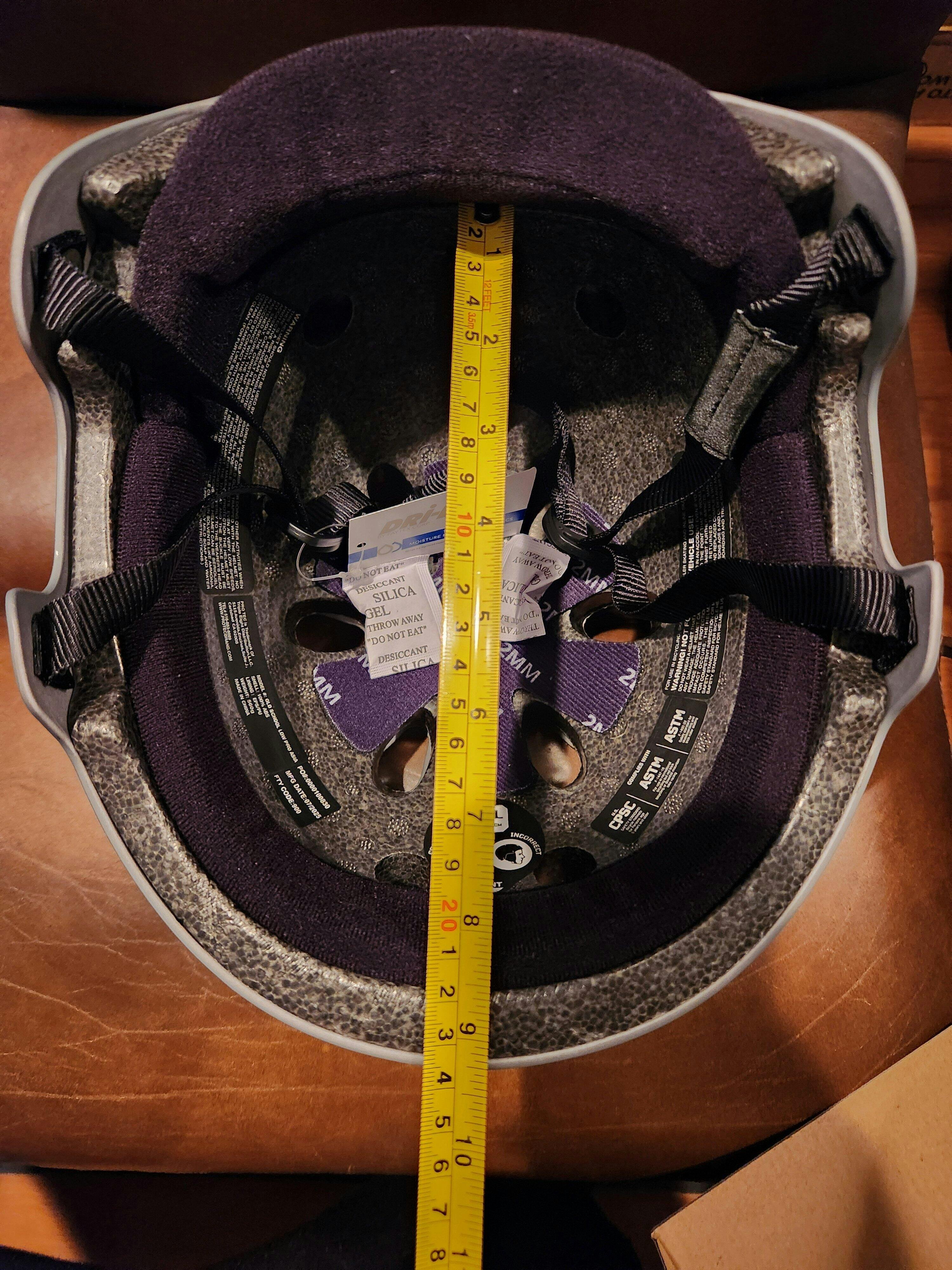 This helmet was too wide for my head shape. I have a narrow, oval head and it is difficult finding helmets that fit me well. I ended up going with the Low Pro Certified helmet. I have posted pictures of some measurements that may be helpful of the large size. Aside from not fitting me, the quality of these are outstanding!
